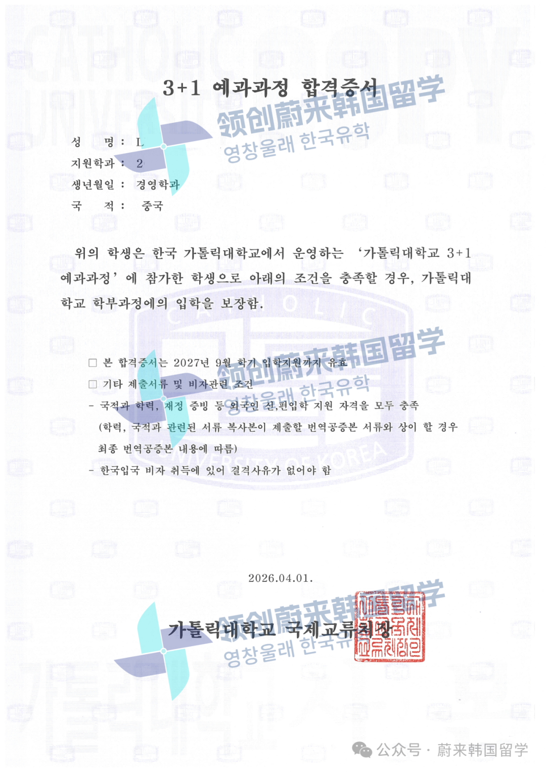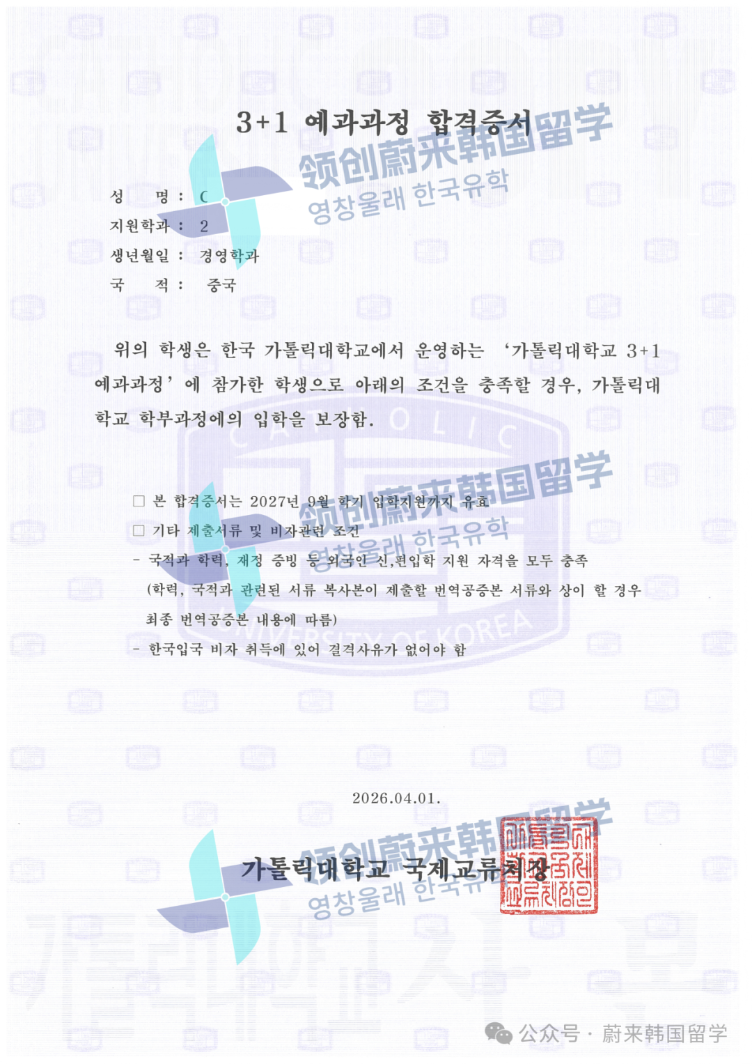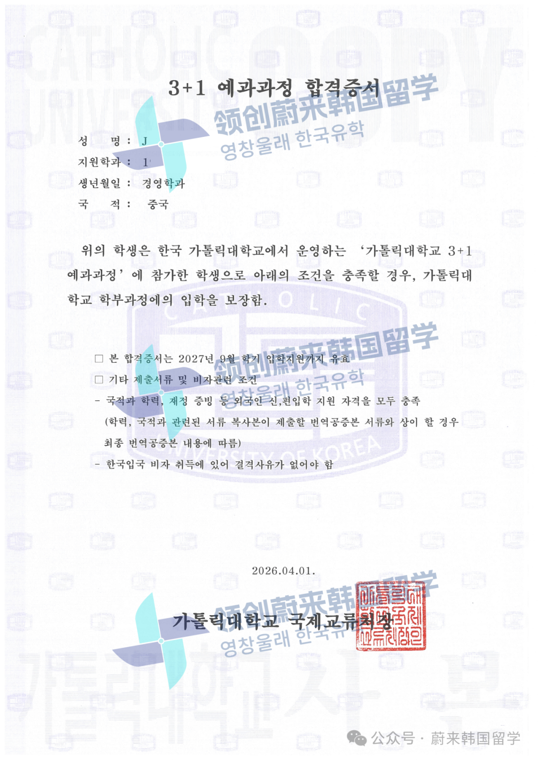 喜報(bào) | 26年9月批次留學(xué)-韓國(guó)加圖立大學(xué)本科第1批預(yù)錄取通知書+24!