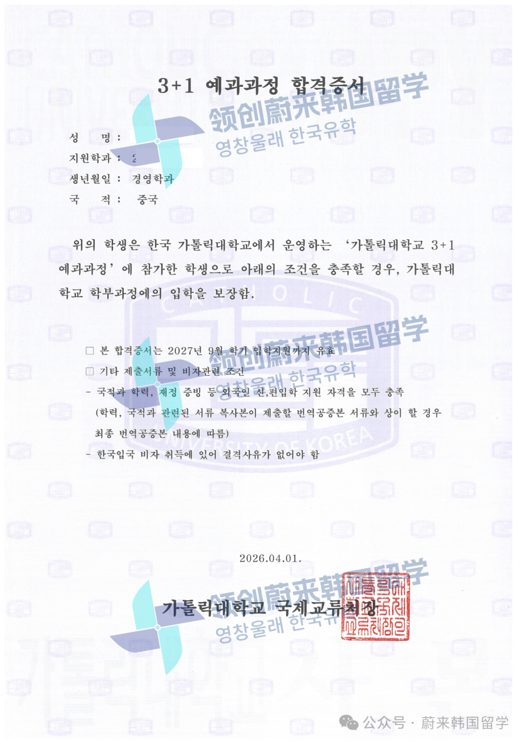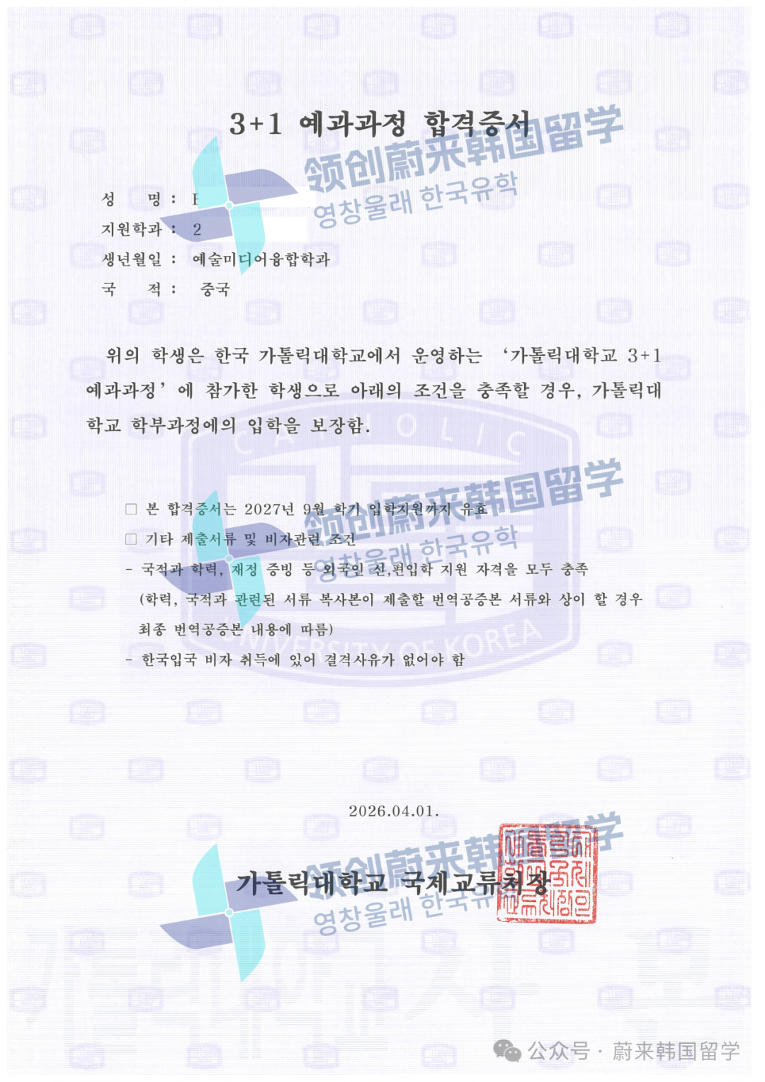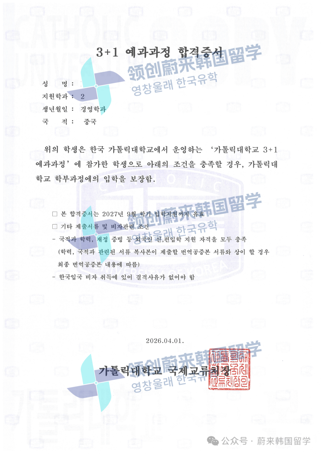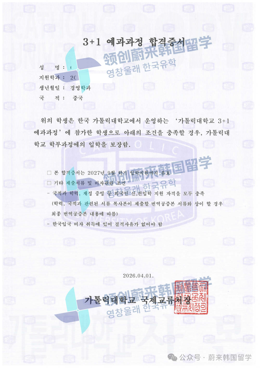 喜報(bào) | 26年9月批次留學(xué)-韓國(guó)加圖立大學(xué)本科第1批預(yù)錄取通知書+24!