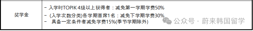 假期學分:800,000韓幣/學分(約4000元人民幣),需修讀6學分