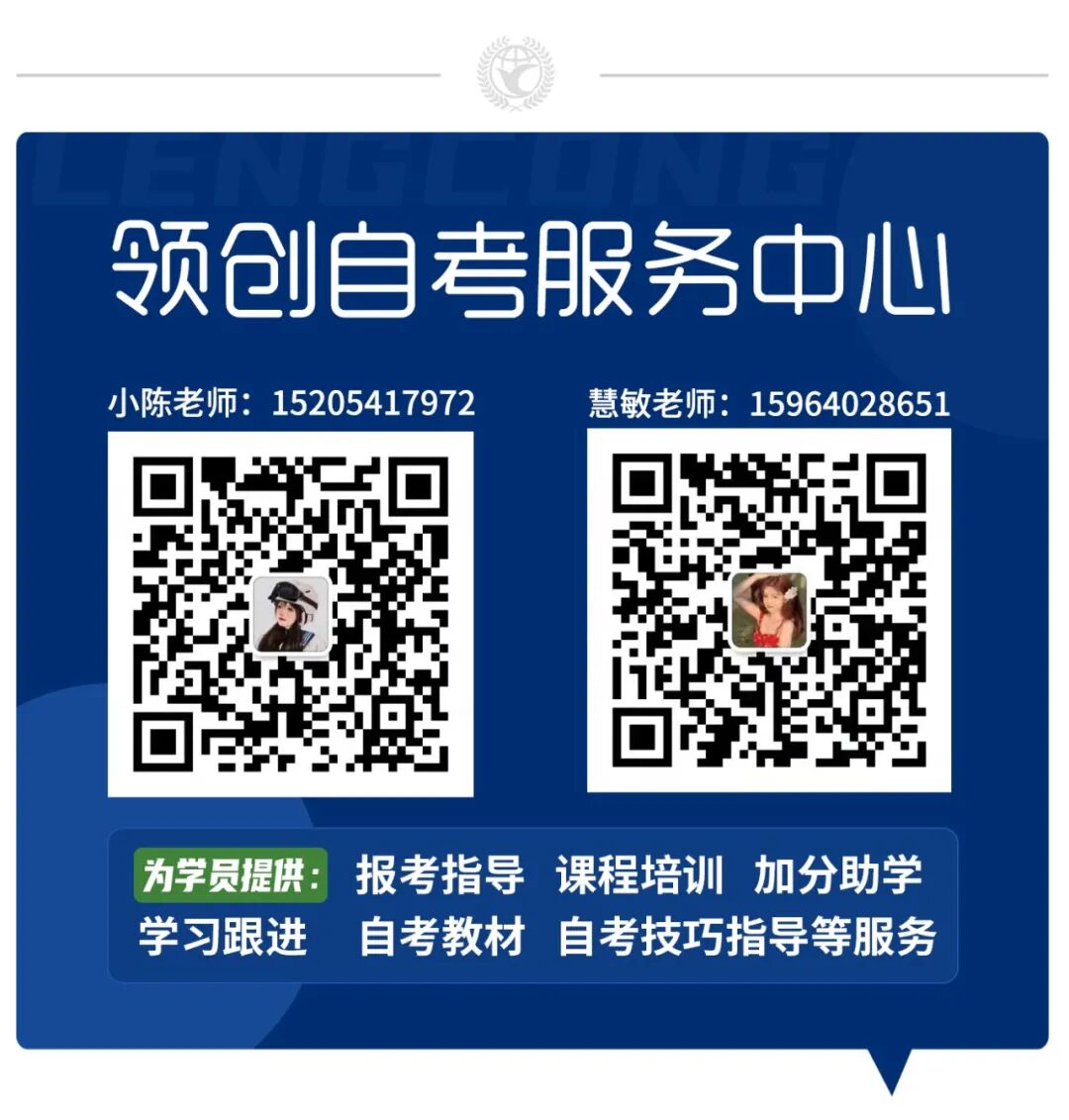 領(lǐng)創(chuàng)自考服務(wù)中心隸屬于山東領(lǐng)創(chuàng)教育集團(tuán),專(zhuān)注自考培訓(xùn)15年,教學(xué)部、教研組及班主任團(tuán)隊(duì)35人服務(wù)超3000余名同學(xué)們順利畢業(yè)。服務(wù)中心可為學(xué)員提供報(bào)考指導(dǎo)、課程培訓(xùn)加分助學(xué)學(xué)習(xí)跟進(jìn)、自考教材、自考技巧指導(dǎo)等服務(wù),在山東報(bào)自考的同學(xué),首選領(lǐng)創(chuàng)自考服務(wù)中心。